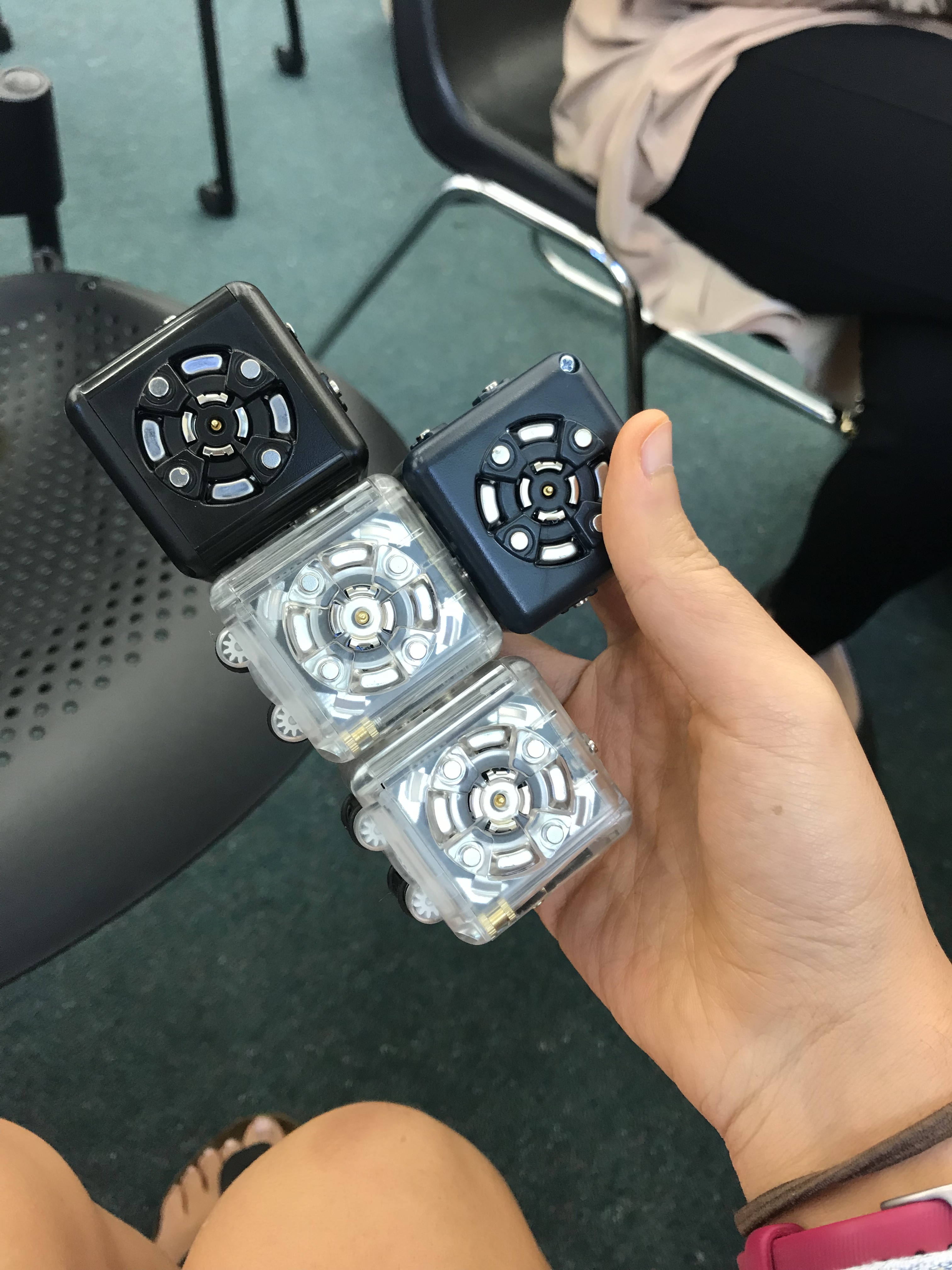 Cubelets are a type of robotic kit where students can program the different cubes to perform certain tasks. This robotic kit is really engaging as each cube serves a different purpose and therefore, they perform differently to stimuli. For example, one of the cubes has a sensor function and when paired with the moving cube can move towards or against sensed movement. The cubes are joined together through magnetism and there is a lot of free choice in regards to what shape the cubes make provided moving cubes stay connected to a surface.