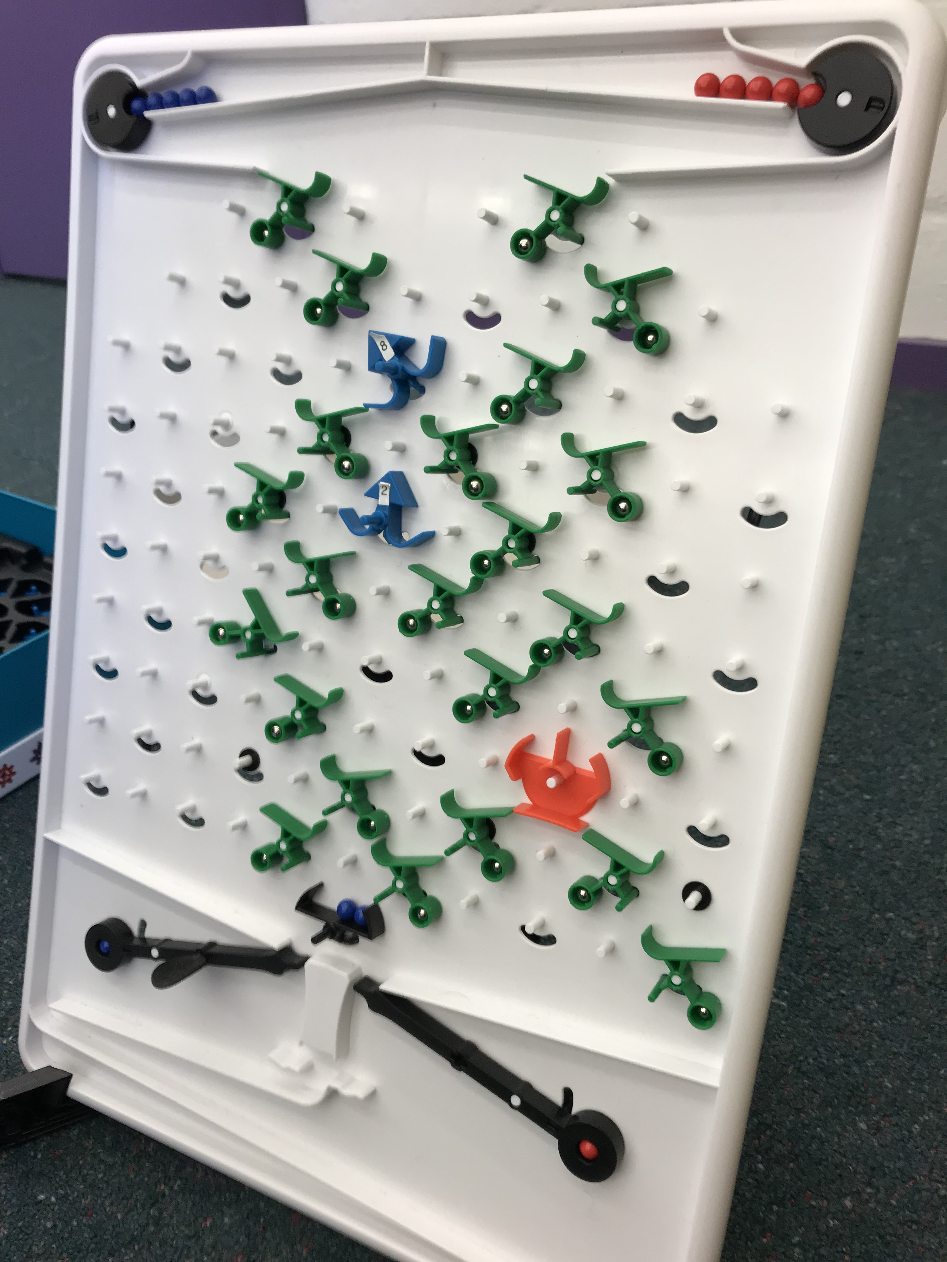 In the game Turing Tumble, players must use problem-solving techniques to build a path for the balls to come down a specific path, ensuring that they meet the output required by the manual book. Turing Tumble is not just a game about coordination, but rather, requires the player to plan, compose and build a path for the ball to complete. The game is engaging and interesting and the manual book included a comic for students to read as they solved each puzzle. Each level included a starting position for all the blocks as well as informing you of the pieces you would be allowed to use to solve the puzzle.